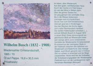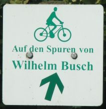 | Rund um Wiedensahl verläuft der Radwanderweg "Auf den Spuren von Wilhelm Busch", der an verschiedenen Stationen Gemälde von Busch den heutigen Ansichten gegenüberstellt. | |