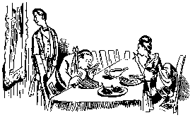 Der Kellner hört des Fremden Wort. Es saust der Frack. Schon eilt er fort. |