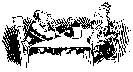 Schon eilt der Kellner emsig fort. - Helene spricht ein ernstes Wort. - |