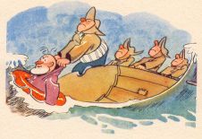 | Zum Glück sah man vom Strand die Not Und schickt sofort ein Rettungsboot; Das nahm den armen Mann schnell auf, Sonst wär' vorbei sein Lebenslauf. So schließt der vierte Ferientag, |