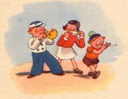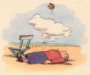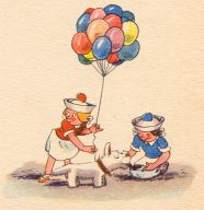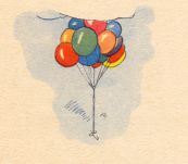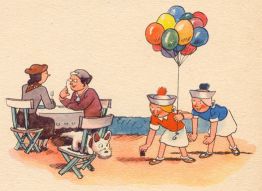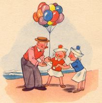 | Kinder liefen mit Trompeten, Mundharmonikas und Flöten, Und ein Mann zum Kaufe bot Luftballons blau, grün und rot. Lene sprach: »Mein lieber Mann, Sei so gut und hör' mich an! Mir und Liesen hat von allen Dingen nichts so gut gefallen, Wie die Luftballons von dir, Bitte schön, verkauf sie mir!« |