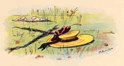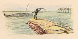 | Und ein Schiffer lief zur Buhne, Schwang geschickt dort die Harpune, Fing das Tier und zog's ans Land. Aber denkt euch, was man fand In dem Bauch des Wals, ei, ei! Reste waren's von den zwei |