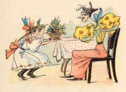 Und sie führten es auch aus, Brachten ihn gefüllt nach Haus, Voller Blumen wundervoll, Die die Base kriegen soll. Doch darunter regt es sich Leider furchtbar gruselig! Als die Mittagsstunde naht, Händ'gen sie im Sonntagsstaat |