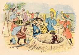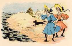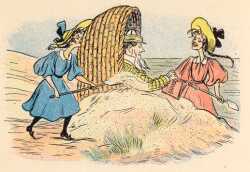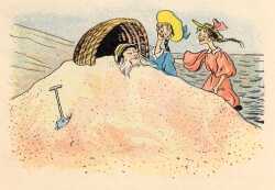 | Da stößt die Len' die Liese an: »Du, dort im Strandkorb schläft ein Mann, Den grab' ich ein, du hilfst dabei!« Natürlich ging das eins, zwei, drei! |