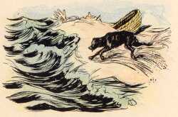 | Er schreit und pfeift und macht Radau, Da kommt der Nero, sein Wauwau, Der gräbt und scharrt mit Emsigkeit, Damit er seinen Herrn befreit. |