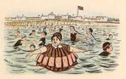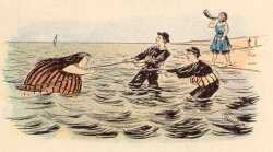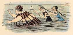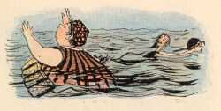 | Jeden Morgen früh um sieben, War am Damenstrande drüben Schon ein reges, buntes Leben, Denn dort schwammen in der Frische Alle Damen wie die Fische, So sie nämlich konnten es; Die nicht kundig waren des, |