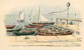 | Am Landungsplatz sind viele Boote, Schwarze, weiße, grüne, rote Liegen da zur Auswahl still, Just, wie man sie haben will! |