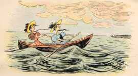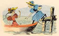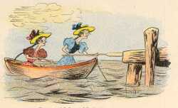 | Und die Lene eins, zwei, drei, Ist natürlich gleich dabei! In ein nagelneues Boot Klettern beide sonder Not, |