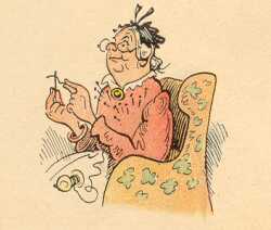 Die am Brustlatz nie genug Nadeln aller Sorten trug, Daß gespickt sie wie ein Has Schlummernd oft im Lehnstuhl saß. Maus und Molli, die das kannten, Neckten gern die Anverwandten. Als die Tante einst geruht, Nahten sie mit Übermut. Links und rechts gebeugt voll Schläue Überfielen sie die Treue, |