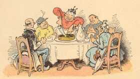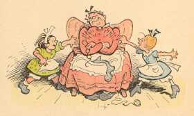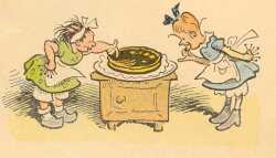 Jedes rief schon an der Pforte: »Ei Du Schlippchen! Welche Torte!« Tante schnitt und hat verteilt. Alle aßen unverweilt. |