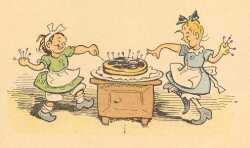 Nah dabei am kühlen Orte Lachte die Geburtstagstorte, Wohl geformt aus Teig und Rahm, Bis die Schar der Freunde kam. |